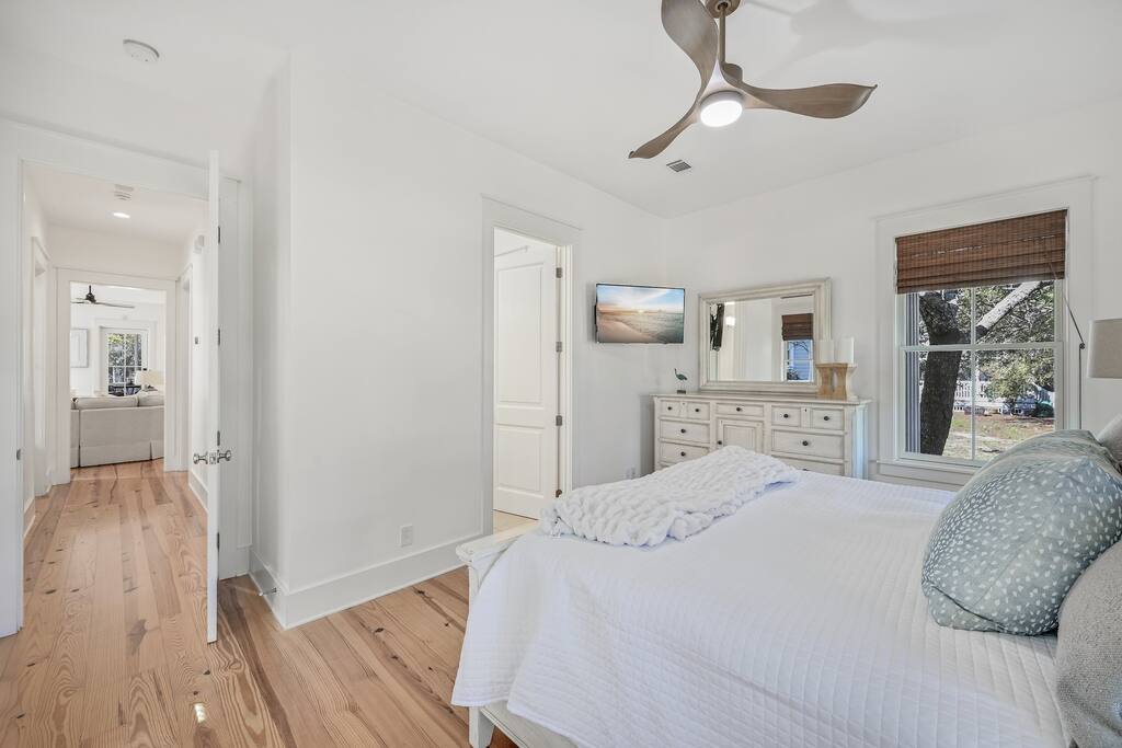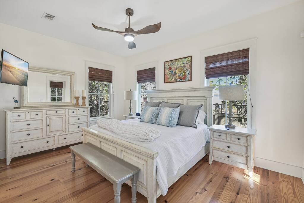 3 Bedrooms, 3 Baths, Sleeps 6 (Master on main with 2 Bedrooms upstairs.) Located on Scenic Hwy 30A in South Walton County and protected by the pristine white sand dunes of Topsail State Preserve, Cypress Dunes is an exclusive 44 acre gated community with a single access road to ensure privacy. This home is just steps away from the state of the art Beach Club which includes a clubhouse, outdoor fireplace, 3900 square foot infinity edge style heated pool, an over-sized jetted hot tub, a full fitness facility and expansive decks in which to view the beautiful sunrises and sunsets. This fabulous 2281 square foot, three bedroom, three bath, home boasts an open floor plan. Amazing very large screened in porch with dining table, sofas and TV. From there you will walk into the main living room, kitchen and dining area. There is also a Master on the main with full double sink ensuite w shower. Master has its own outside deck and TV. Past the kitchen on the first floor you will find the laundry room. The upstairs hall you will find a desk for any work you might have to do on vacation. Both bedrooms upstairs include a full bath with a tub/shower combo, TV. Overview: *1. miles from the beach (Beach Highlands Access) *3 bedrooms, 3 baths *2281 sq ft *gas grill *2 community pools - 6 wristbands are provided for the community pool Overnight: *King bed in 1st floor Master room; private bath; TV *Queen bed in 2nd floor guest room; private bath; TV *Queen bed in 2rd floor guest room; private bath; TV Details: *check-in is at 4:00 PM CST and checkout is at 10:00 AM CST Pool seasonally heated: POOL HEAT SCHEDULE 2024 Spring Break: March 4 – April 15 2024 Family Fall Break: October 7 - 15 2024 Thanksgiving Break: November 18 - 26 2024 December Holiday Break: December 16 – January 1, 2025 Walton County STR License # DWE7605060