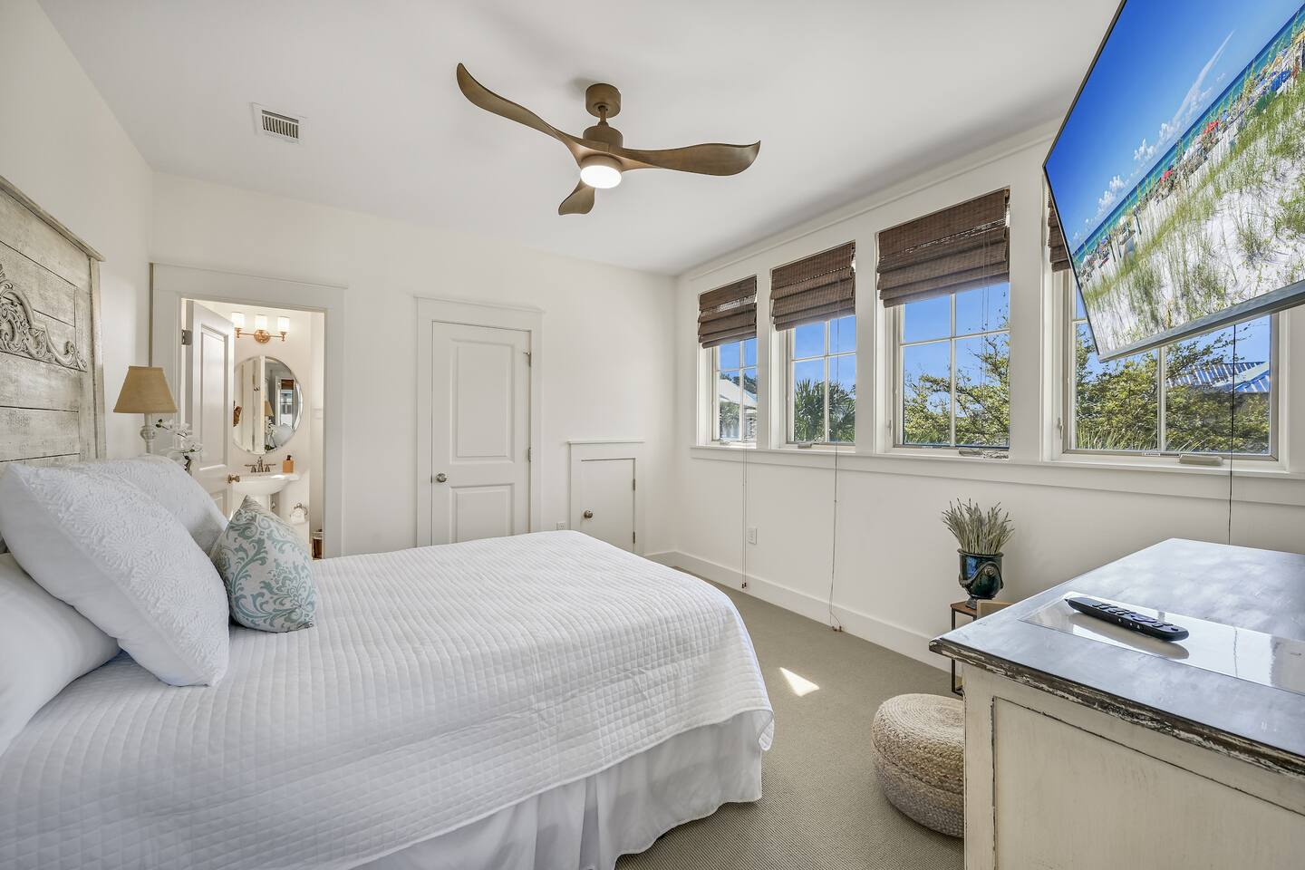 3 Bedrooms, 3 Baths, Sleeps 6 (Master on main with 2 Bedrooms upstairs.) Located on Scenic Hwy 30A in South Walton County and protected by the pristine white sand dunes of Topsail State Preserve, Cypress Dunes is an exclusive 44 acre gated community with a single access road to ensure privacy. This home is just steps away from the state of the art Beach Club which includes a clubhouse, outdoor fireplace, 3900 square foot infinity edge style heated pool, an over-sized jetted hot tub, a full fitness facility and expansive decks in which to view the beautiful sunrises and sunsets. This fabulous 2281 square foot, three bedroom, three bath, home boasts an open floor plan. Amazing very large screened in porch with dining table, sofas and TV. From there you will walk into the main living room, kitchen and dining area. There is also a Master on the main with full double sink ensuite w shower. Master has its own outside deck and TV. Past the kitchen on the first floor you will find the laundry room. The upstairs hall you will find a desk for any work you might have to do on vacation. Both bedrooms upstairs include a full bath with a tub/shower combo, TV. Overview: *1. miles from the beach (Beach Highlands Access) *3 bedrooms, 3 baths *2281 sq ft *gas grill *2 community pools - 6 wristbands are provided for the community pool Overnight: *King bed in 1st floor Master room; private bath; TV *Queen bed in 2nd floor guest room; private bath; TV *Queen bed in 2rd floor guest room; private bath; TV Details: *check-in is at 4:00 PM CST and checkout is at 10:00 AM CST Pool seasonally heated: POOL HEAT SCHEDULE 2024 Spring Break: March 4 – April 15 2024 Family Fall Break: October 7 - 15 2024 Thanksgiving Break: November 18 - 26 2024 December Holiday Break: December 16 – January 1, 2025 Walton County STR License # DWE7605060